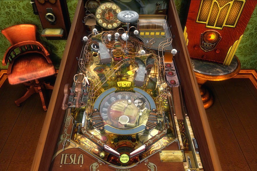 La tercera tabla es la llamada 'Tesla', que está basada en el científico del siglo XIX. Es la más vistosa del pack, tanto por su diseño, como por la cantidad de elementos desplegados en la tabla. A parte de las rampas de doble recorrido, tenemos una zona de bonus en la parte izquierda que tendremos que manejar como si se tratara de imanes. En el centro hay un selector de misiones que nos indicará las que realicemos, si conseguimos más de una, porque la tabla es de gran dificultad. Un cañón, polos eléctricos y muchas sorpresas más en la tabla que más me gusta de las cuatro. La cuarta y última tabla es 'V12' basada en la representación de un motor de un coche de gran cilindrada. Con una ambientación muy simple, pero muy cuidada con detalles como un ventilador. Donde las rampas realizadas como tubos de un motor, unos selectores de bola como si fueran una culata o una zona superior separada con distintos pulsadores de bonus. Con recuperador de bolas lateral y una mini-tabla en el centro de la principal. Para mí la excesiva dificultad y los pocos puntos que he conseguido siempre que he jugado la han dejado en un segundo plano y casi no juego en ella.